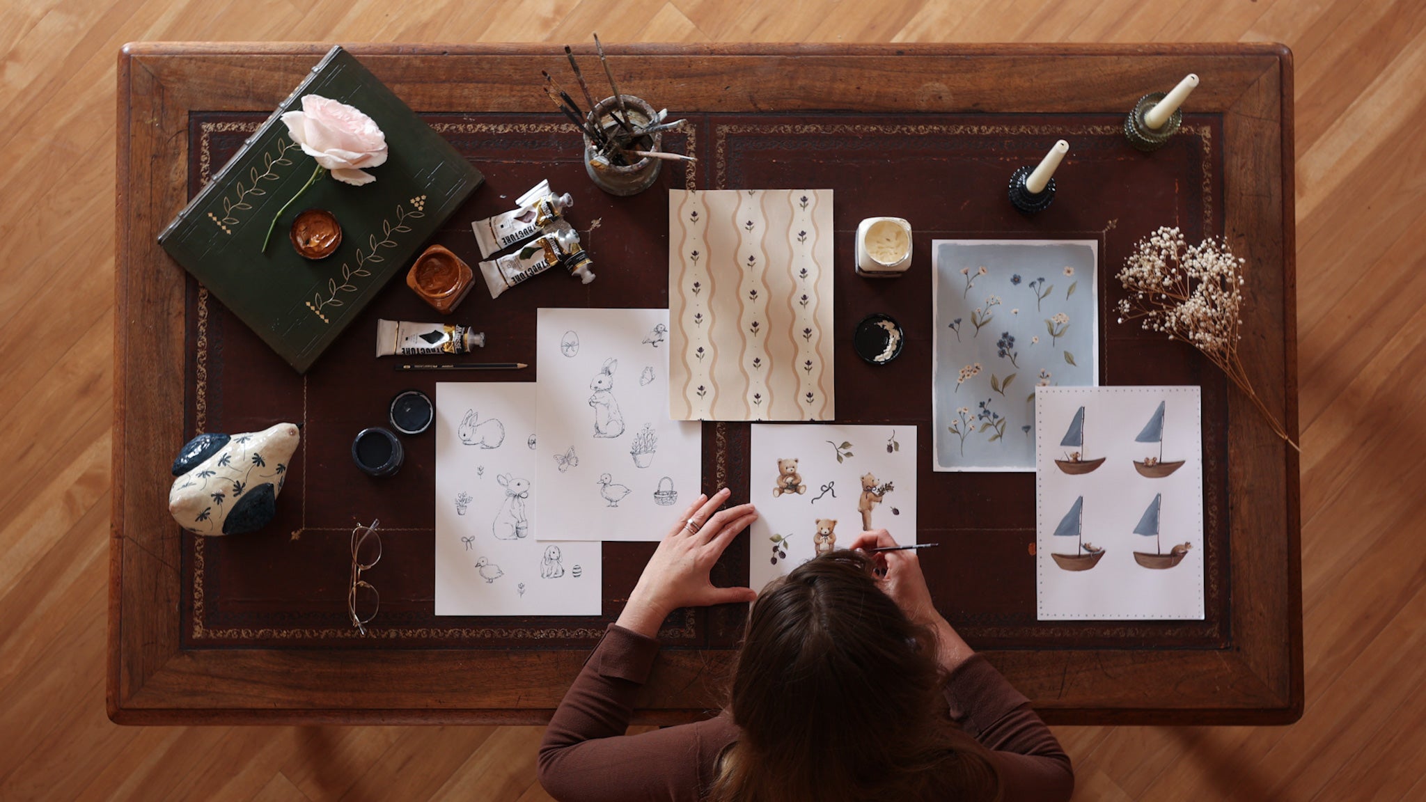 Every design begins with a brushstroke - not a screen. Soft prints, filled with storybook charm.