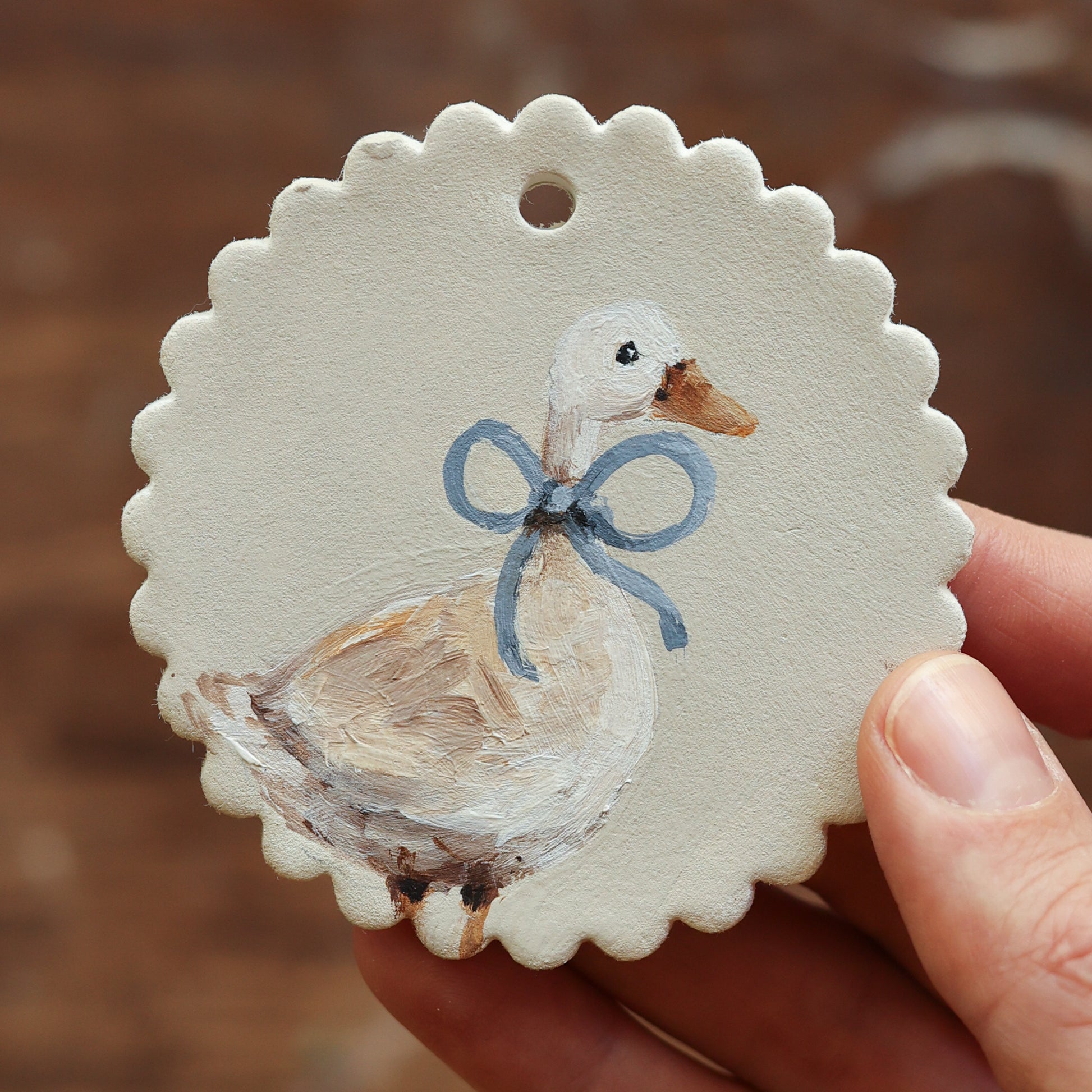 Hand painted ceramic - Goose with Bow