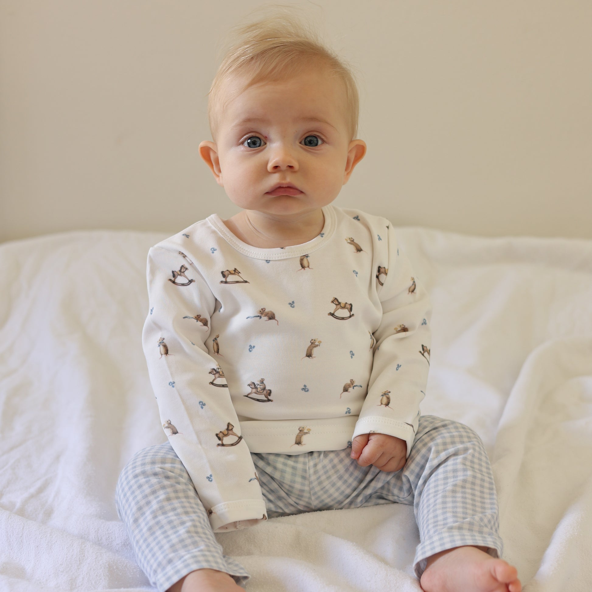 Pair your long sleeve top with matching gingham pants for a complete outfit.