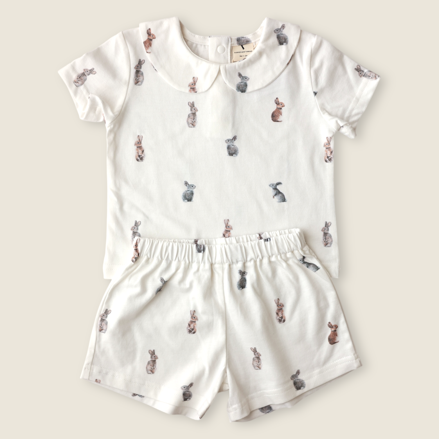 Our kids' shirt and short sets are made from 100% cotton, with hand-illustrated designs and a sweet scallop collar that give them a timeless, vintage feel. Designed with love in Australia, they’re perfect for both Pyjamas or a special day out.